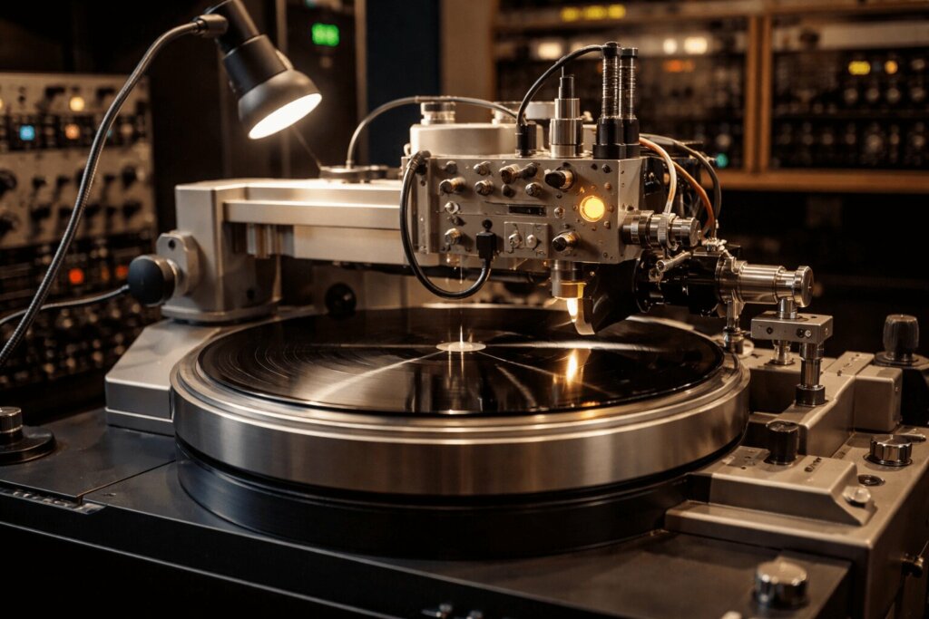 This result is then handed over to a cutting engineer, whose role is to transform the audio signal into a physical groove engraved onto a master disc.
